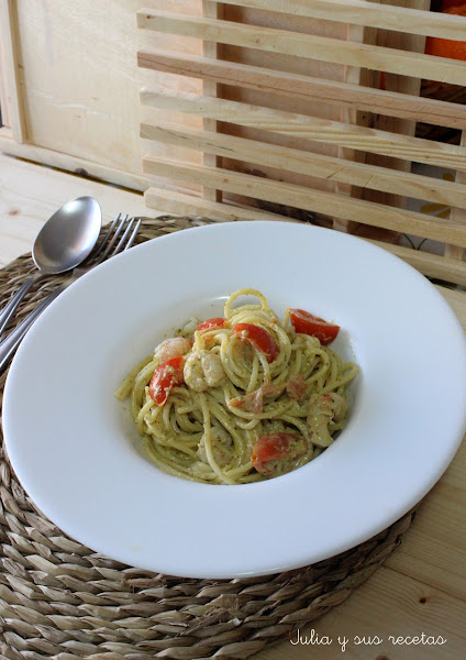 Podemos utilizar cualquier tipo de pasta, pero yo he preferido los espaguetis y el resultado ha sido un plato muy apetitoso y muy aromático.