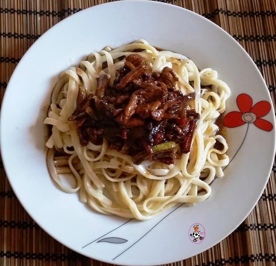 En un plato ponemos los tallarines y encima el pollo con las verduritas y la salsa.