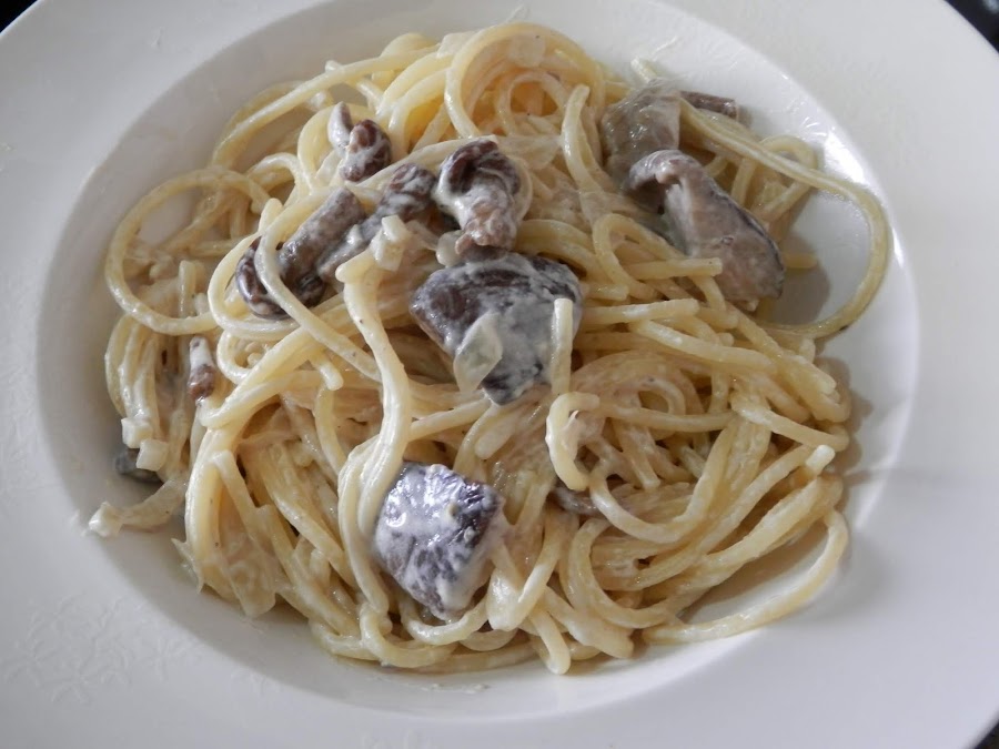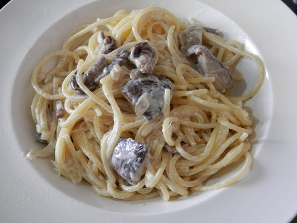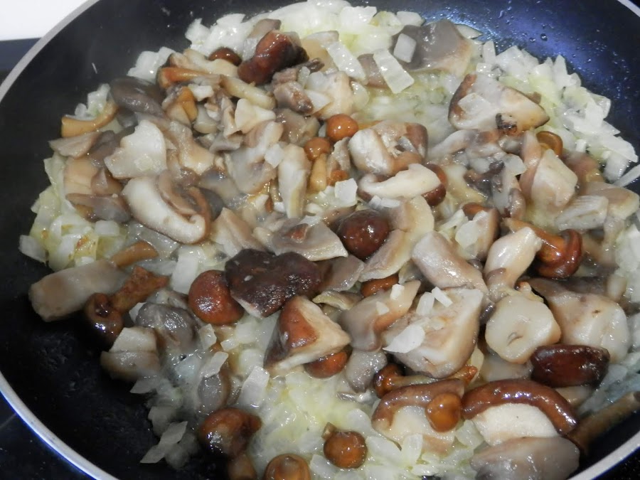 Cuando estén hechas las setas, añade la nata (crema de leche) y deja que cueza bien.