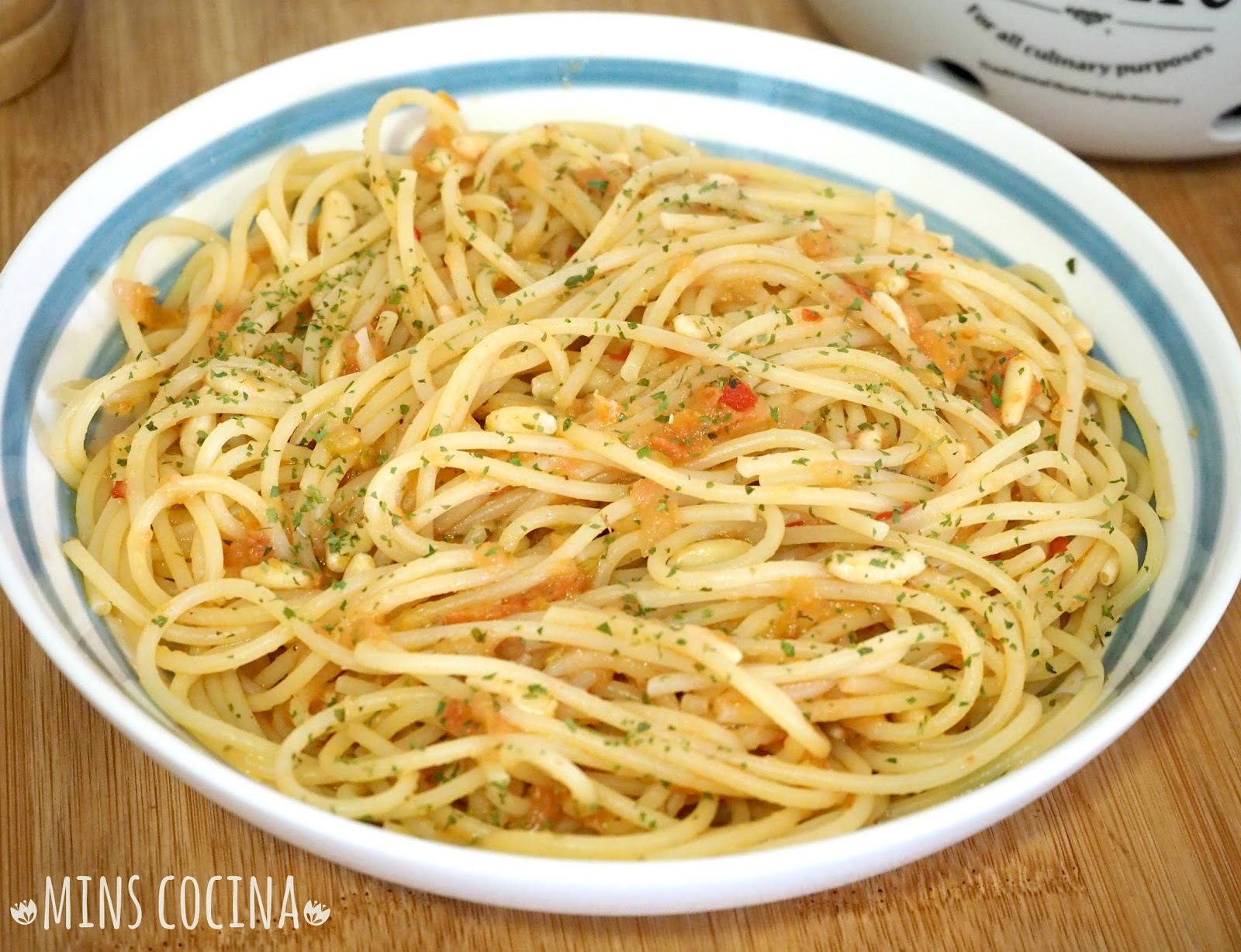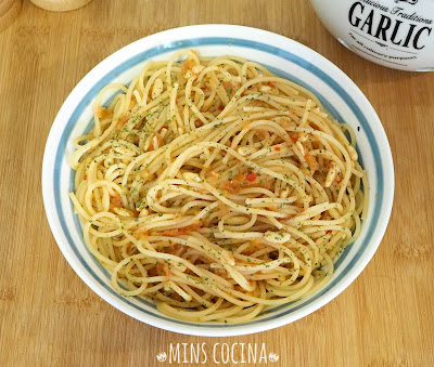 - Ya tenemos nuestro delicioso plato de espaguetis listo para comer. Si espolvoreamos un poquito de perejil queda aún mejor. Ya veréis qué rico!