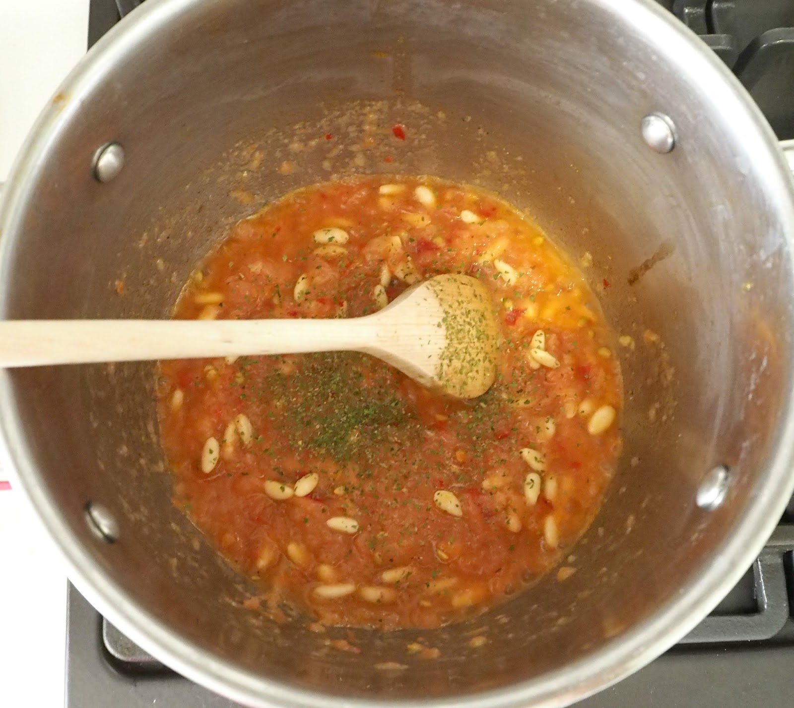 - En una cazuela ponemos la salsa anterior. Cuando empiece a hervir (no muy fuerte) añadimos los espaguetis y removemos. Dejamos un minuto, removiendo frecuentemente y apagamos.