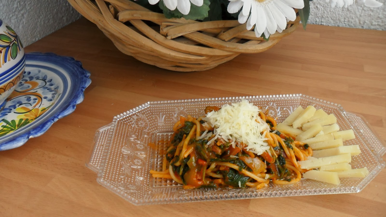 Retiramos la pasta, aclaramos y escurrimos, la agregamos al sofrito y servir muy caliente acompañado de queso rallado al gusto.Yo no me puse.