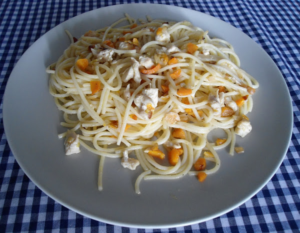 Escurre la pasta y mezclala con la verdura se le da unas vueltas y se le echa por encima el sazonador de espaguetis y listo.