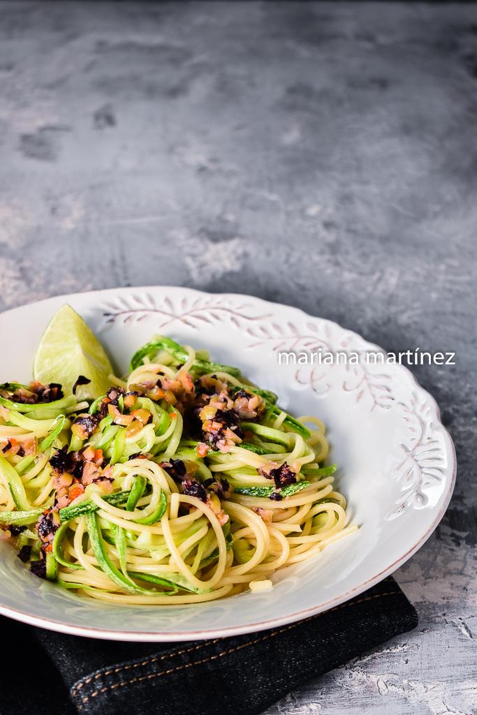 Yo soy una fanática mas de estos fideos. Los como solos con alguna salsa y un poco de queso o mezclados con fideos de trigo o sémola. Y esta última opción de hacer los fideos mixtos me encanta; porque trato de consumir una cantidad pequeña de pasta de trigo y al mezclarlos con el calabacín, obtengo un gran plato de fideos que me proporciona la cantidad exacta de hidratos de carbono y vegetales, en una sola preparación.
