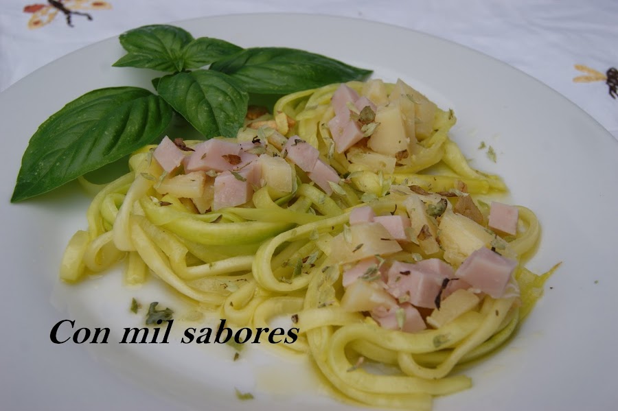 Menuda suerte que tengo!!, mi amiga Mª Dolores me ha vuelto a regalar verdura de su huerto ecológico!!!....unos calabacines tan grandes, tan grandes, que no sabía muy bien si cocinarlos ó ponerles un par de ruedas y utilizarlos como medio de transporte.Eso es verdura y lo demás es cuento!!!. Por supuesto me apetecía hacer con ellos algo muy especial y hace tiempo que tenía en mente sustituir la pasta por verdura de temporada, así que nada mejor que estos calabacines para elaborar esta sencilla y deliciosa receta.