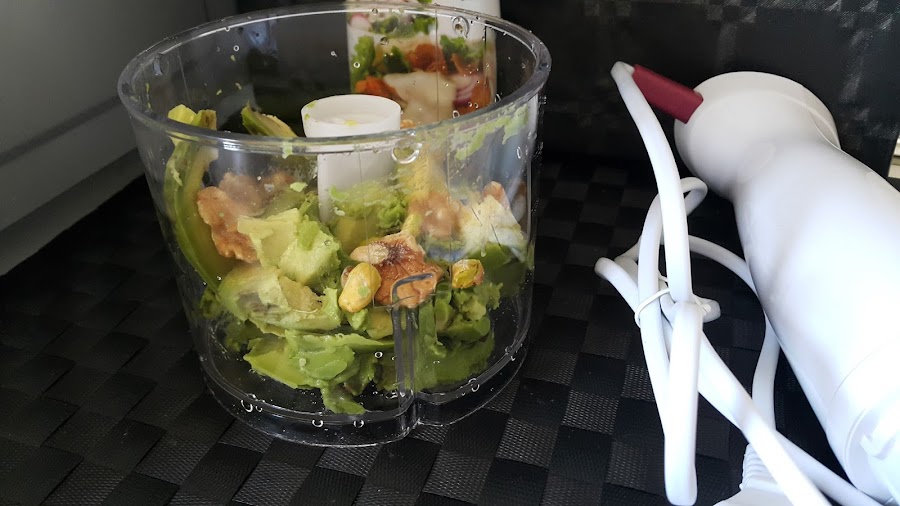 Pelamos el aguacate y lo trituramos junto con un puñado de nueces.
