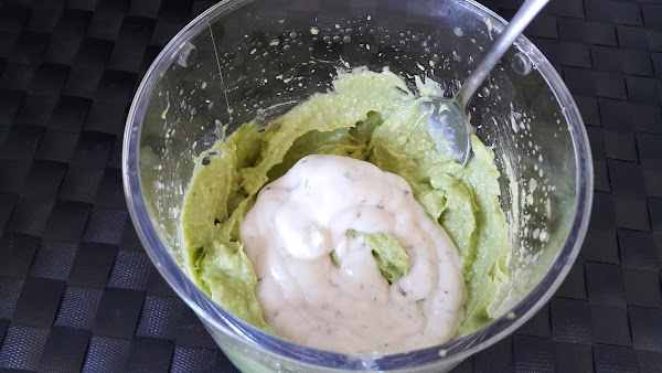 Obtendremos una salsa cremosa y un poco espesa. Yo le he añadido una cucharada de salsa de yogur pero le podéis añadir un poco de agua si preferís aligerar la receta.
