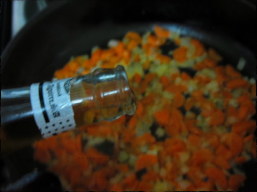 Comenzar pochando en aceite a fuego medio las zanahorias y la cebolla cortada en brunoise