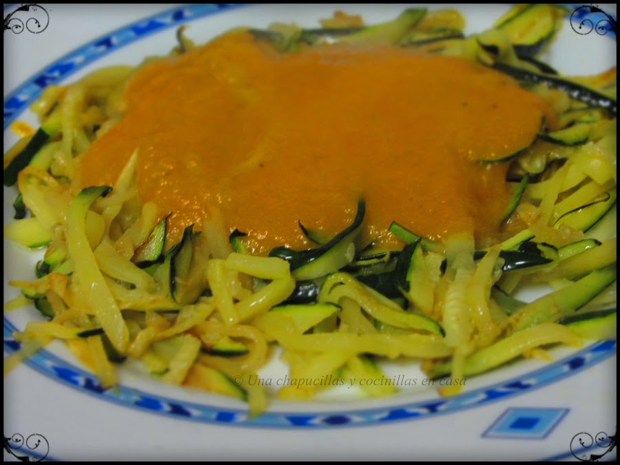 RECETA DE ESPAGUETIS DE CALABACIN CON SALSA DE ZANAHORIA