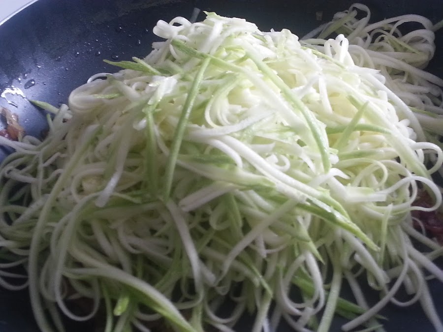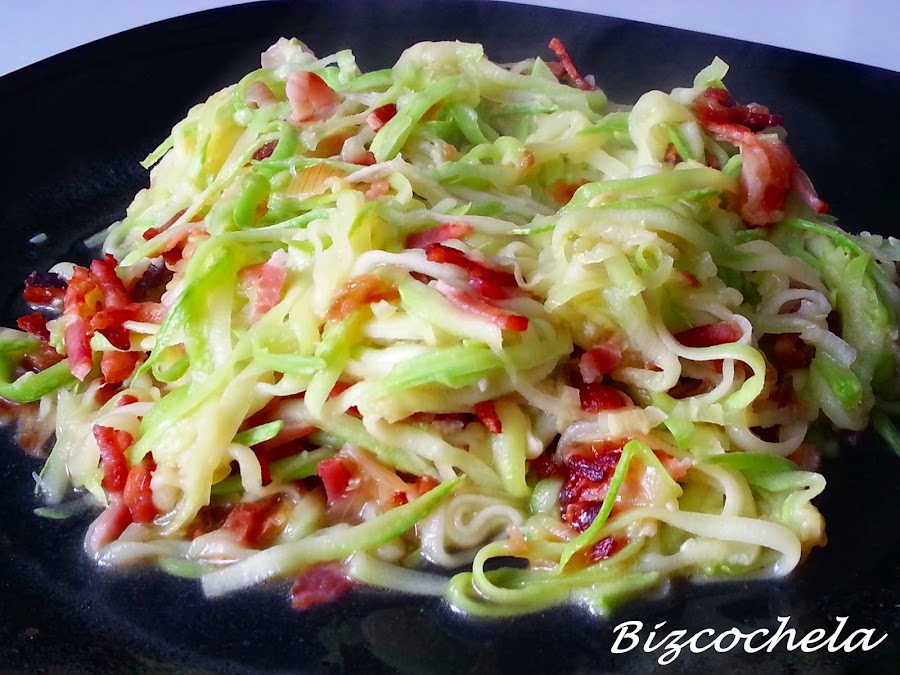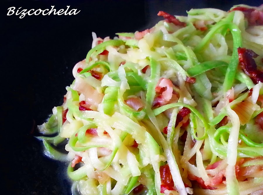 Comenzamos la semana con un plato de pasta sin pasta.....ESPAGUETIS DE CALABACÍN, una forma muy muy sana de preparar un plato de pasta, pero prescindiendo de los hidratos de carbono....perfecto para la operación post navidad.