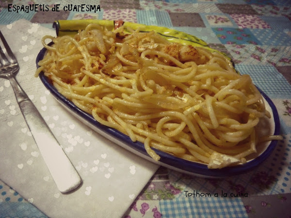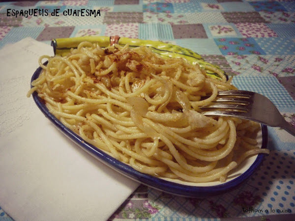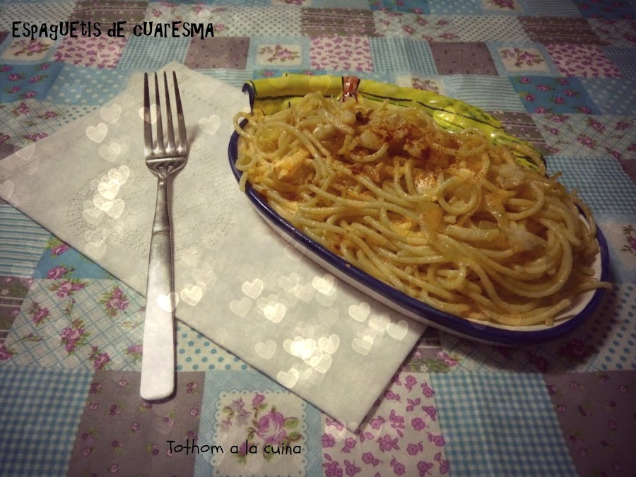 Y si, en toda esta situación os había tenido que traer la famosísima receta de espaguetis con albóndigas. Pero teníamos libertad para preparar nuestro plato de pasta y aprovechando la Cuaresma y el bacalao, os traigo esta receta como mi aportación a este mes.