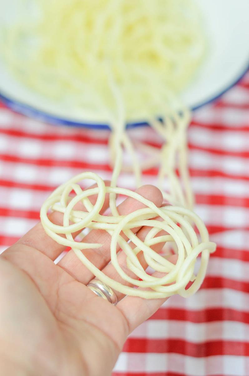 Para hacer estos espaguetis vegetales necesitamos un aparato para ello claro… Los hay de todo tipo, formas y tamaños, y por supuesto de precios. Os dejamos el enlace de Claudia & Julia, una tienda on line de productos de gran calidad donde podéis encontrar diferentes modelos, seguro que alguno de ellos os encaja. Nosotras nos hemos animado a comprar uno para probar, y estamos encantadas con el resultado!!