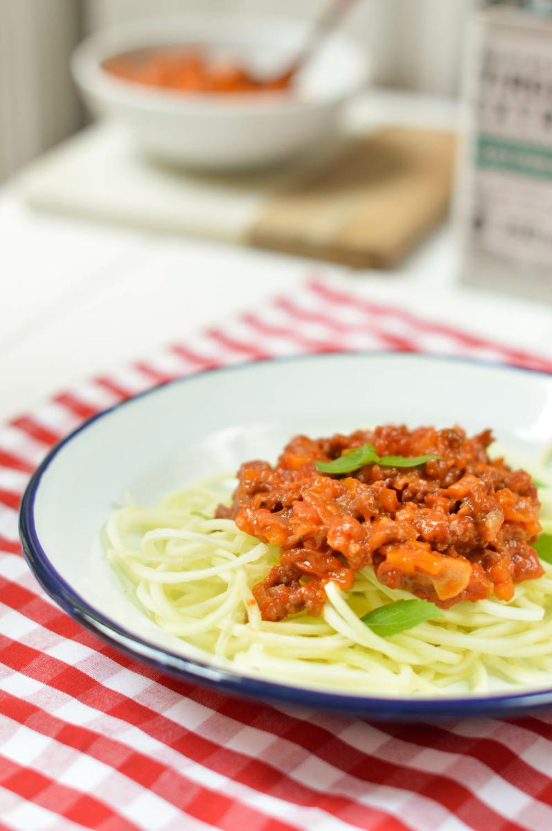 Espaguetis falsos de Calabacín con Salsa Boloñesa ligera (Zoodles)
