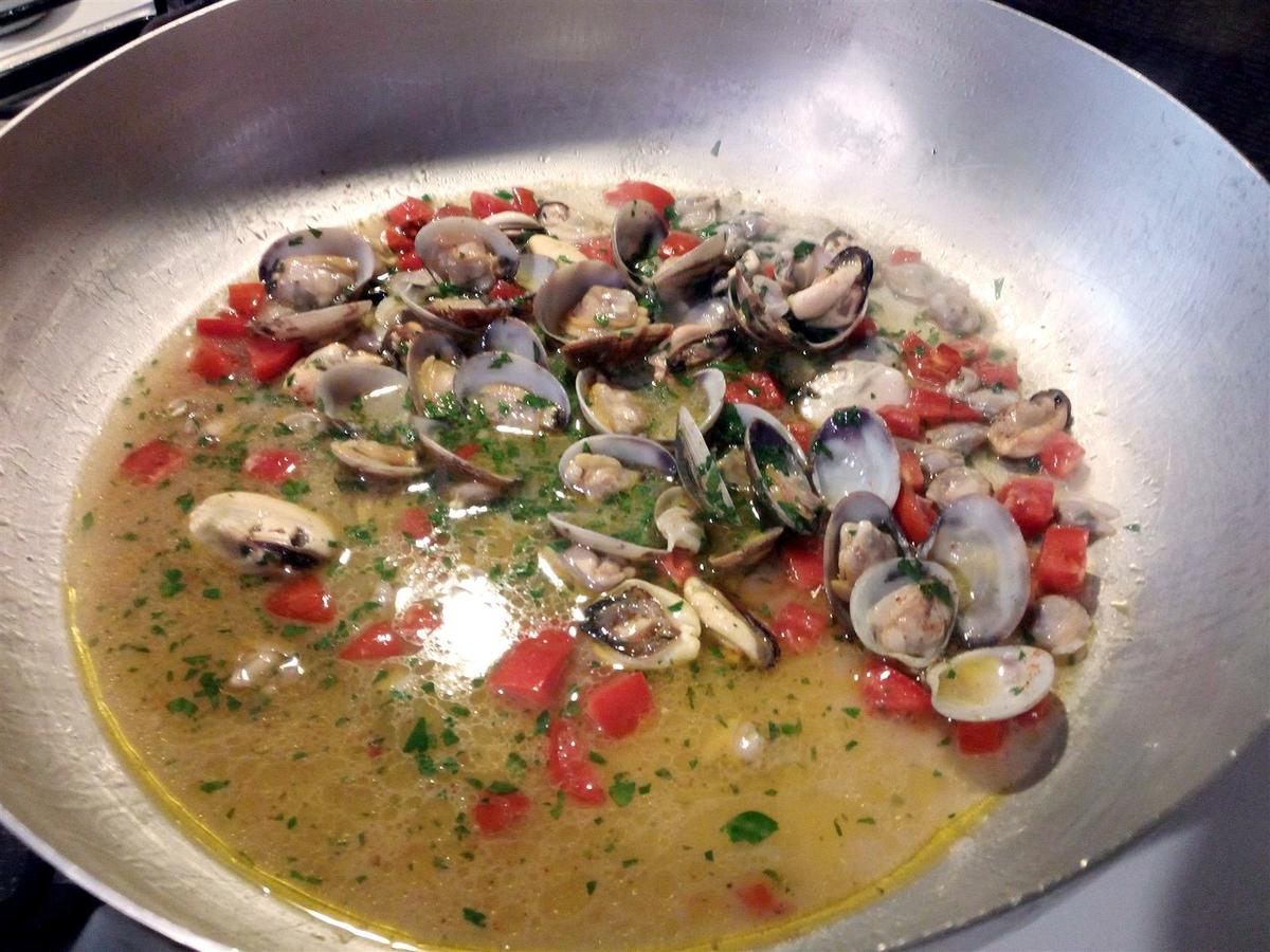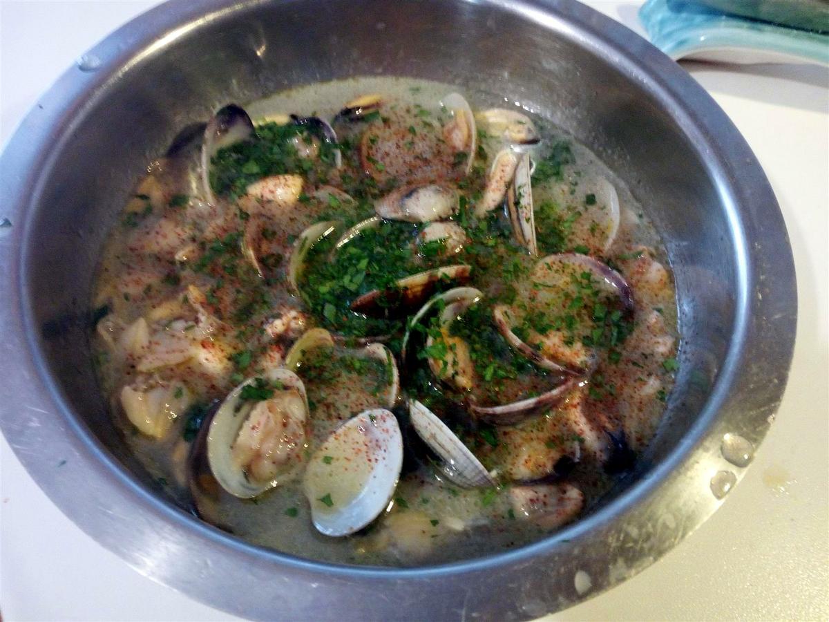 Agregar las almejas y mejillones con su agua. Espolvorear con perejil.