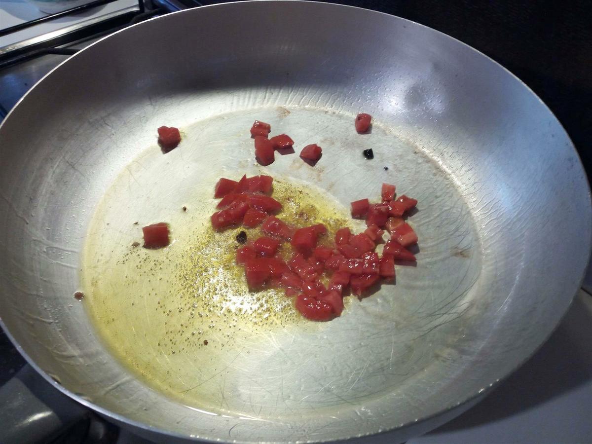 Poner una olla con agua a hervir (consejos de cocción). En una sartén, poner aceite, ajo y guindilla a sofreír, luego el tomate.