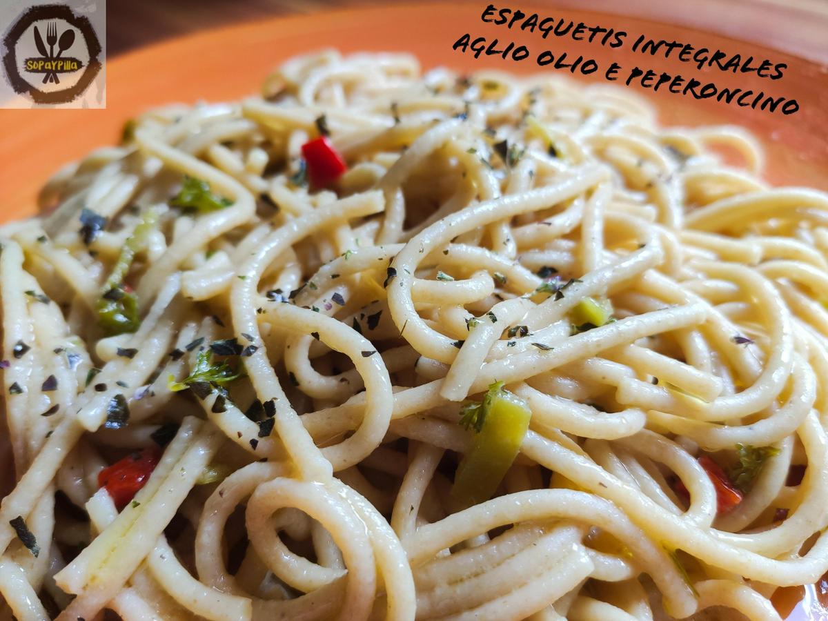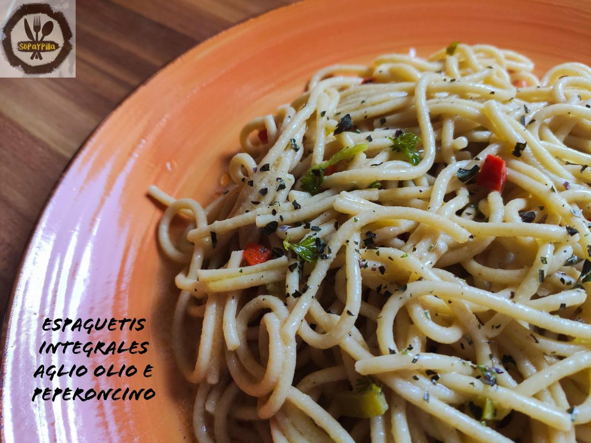 Lentrada Espaguetis integrales aglio olio e peperoncino ha aparegut primer a Sopaypilla.