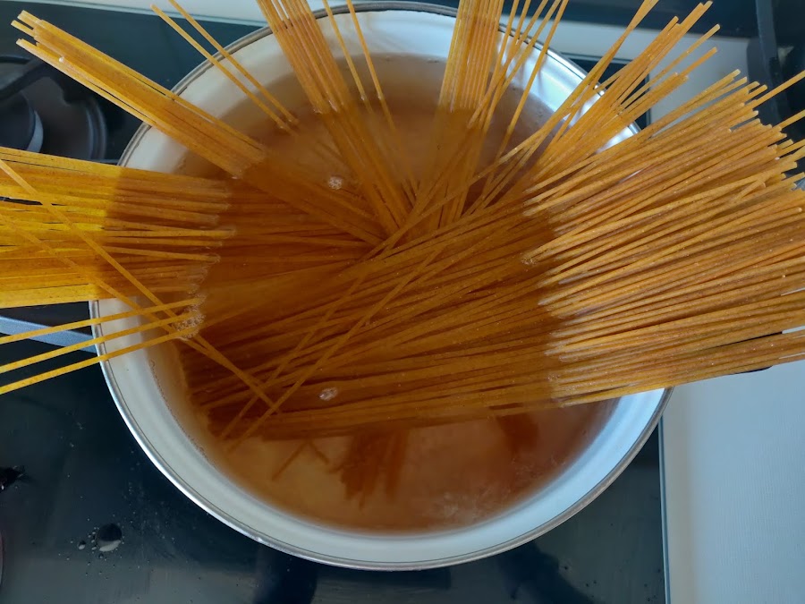 Empezaremos hirviendo la pasta en abundante agua con sal según indicaciones del envase.