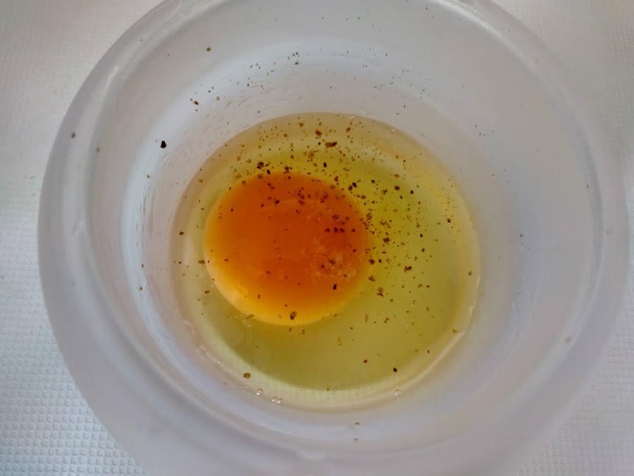 A continuación añadiremos el huevo sin la cáscara y lo sazonaremos con un poco de pimienta recién molida.