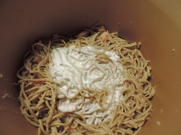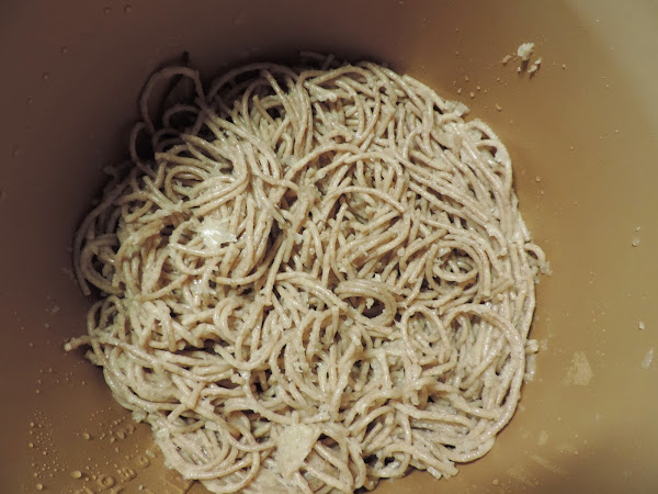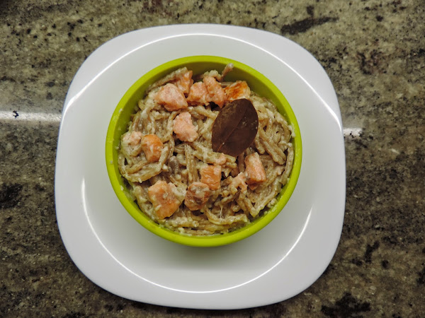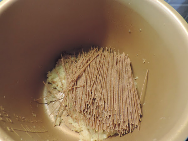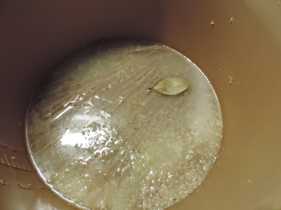 La hoja de laurel, sal. nuez moscada y echamos el agua hasta que se cubran los espaguetis.