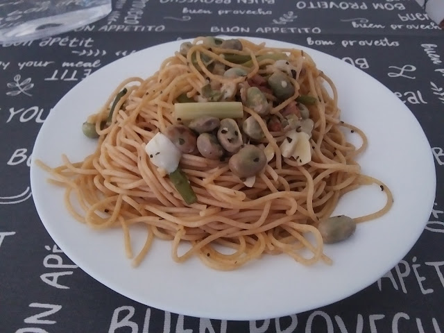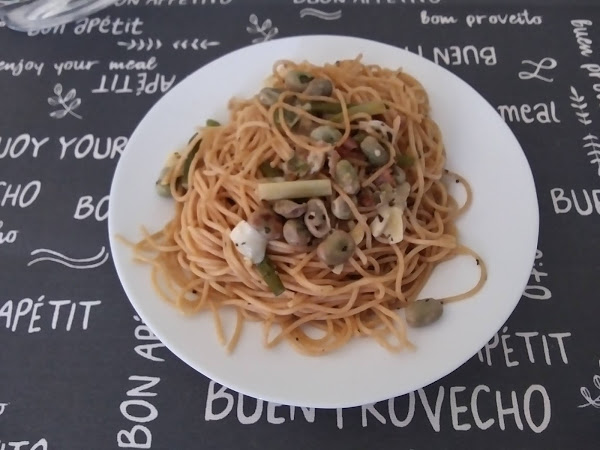 Cocemos los espagueti en agua hirviendo y una cucharada de sal el tiempo indicado en el paquete.