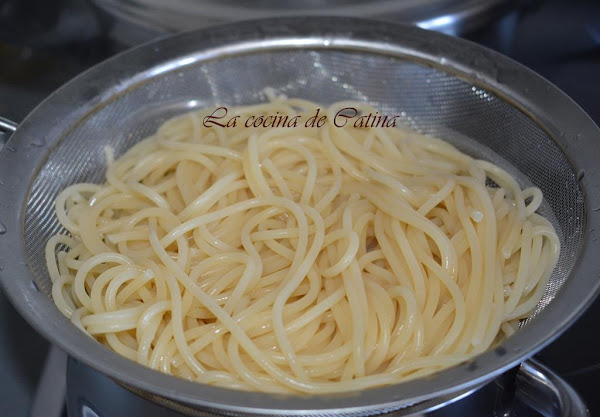 Cocemos la pasta en abundante agua hirviendo, ligeramente salada, removiéndola de vez en cuando durante la cocción, que será el tiempo indicado en el envase. escurrirla,
