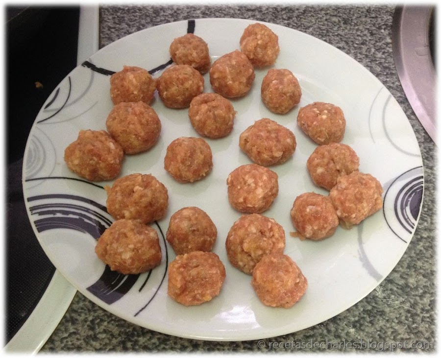 Salpimentamos al gusto y nos ponemos manos a la obra. Amasamos bien y vamos cogiendo porciones de carne y haciendo bolitas.