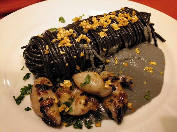Por último, serviremos el plato con la salsa, los espaquetis y los chipirones espolvoreados por los ajos y un poco de perejil picado. Para hacer la foto he presentado los espaguetis enroscados, pero he olvidado hacer fotos del proceso. Lo primero, quisiera advertir a quien se quiera arriesgar que queda muy mono, pero es un rollo y hay que recalentar la pasta. De todos modos, si os animáis, lo que he hecho es extender una parte de los espaguetis hasta conseguir el ancho que quería. Después, coloque el resto sobre ellos y fui enroscándolos con muuuuucho cuidado.