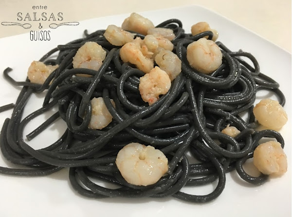 Escurre la pasta y mezcla con las gambas reservadas en una fuente y sirve.