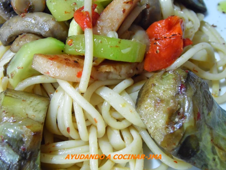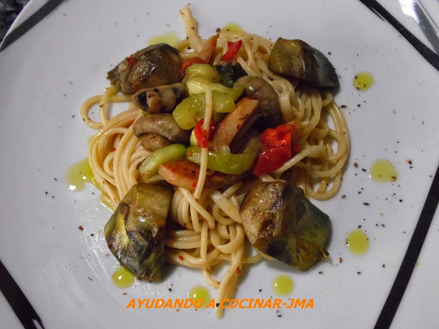 Hoy toca Receta Básica para el día a día. Unos simples espaguetis con verduras, que al añadirle un toque de picante, se convierten en otro plato totalmente diferente.