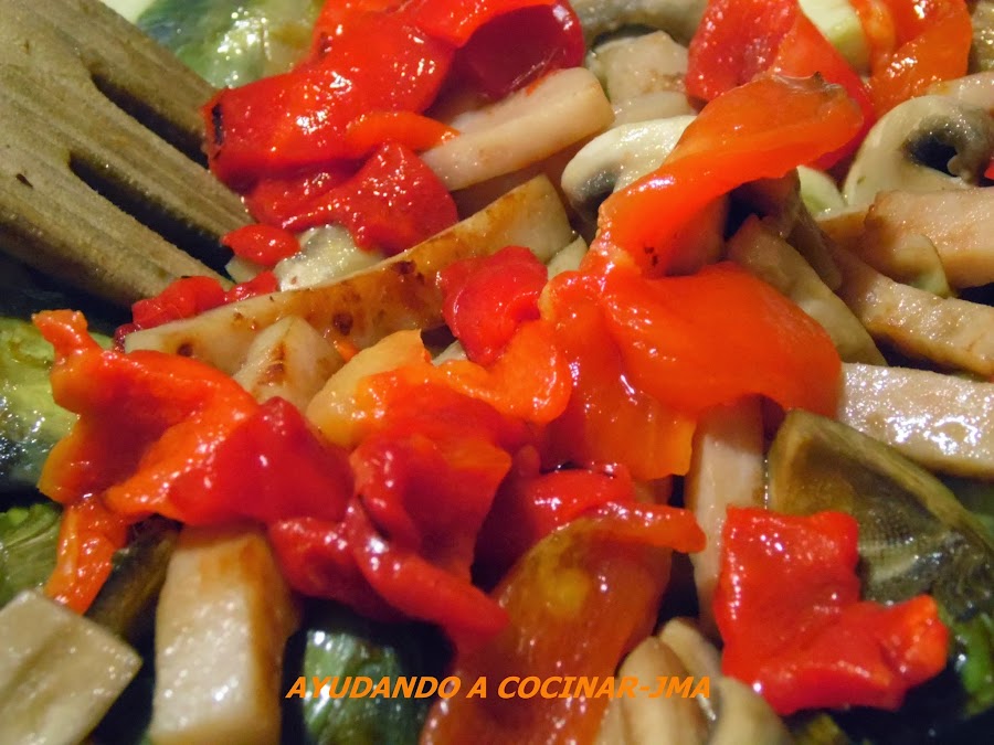 Incorporar el pimiento morrón, mezclar, probar y rectificar de sal y es necesario
