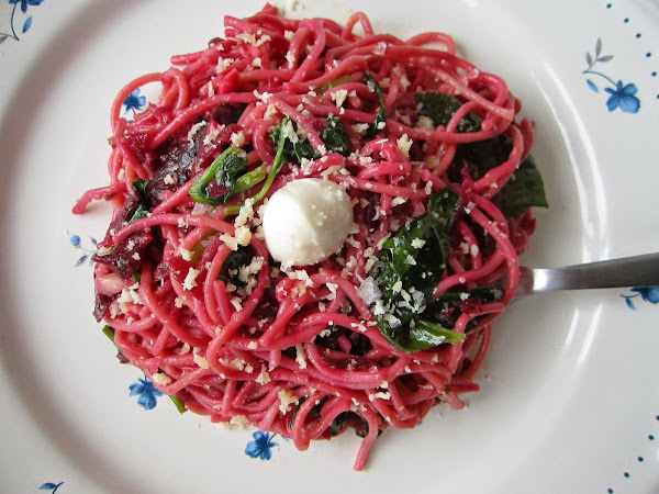 Yo los llamo espaguetis antiestrés, por su color relajante y su sabor a campo. En casa nos encantan y cocinarlos es para mi una fiesta. Mi parte favorita es el momento de añadir la remolacha, cuando ésta comienza a teñirlo todo, hasta un día negro, de rosa con una facilidad pasmosa. Es casi una experiencia terapéutica que además es comestible y saludable.