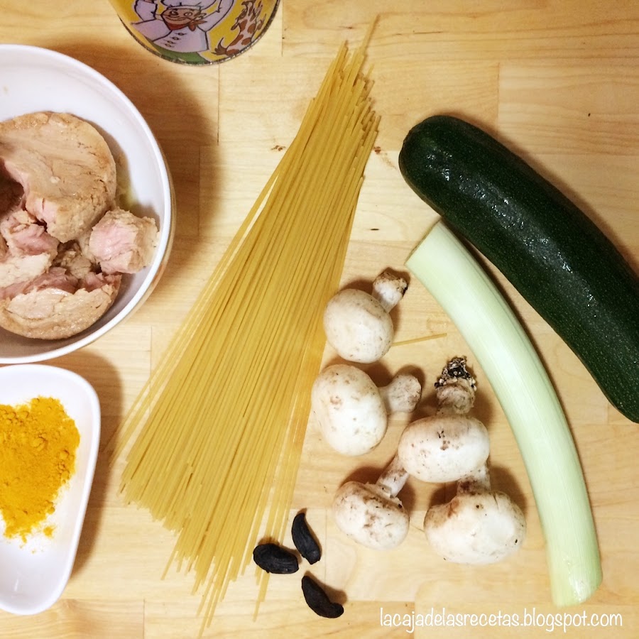 En lo que se hierve la pasta, la verdura se habrá pochado, será el momento de incorporar la cúrcuma, espolvoreando y removiendo otra vez. Dejar un par de minutos más al fuego y listo.