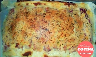 Antes de seguir ponemos el horno a precalentar. Enrollamos los espárragos uno a uno en una loncha de jamón y una de queso. Y los colocamos en un fuente para horno. Añadimos la bechamel por encima de forma que cubra bien todos los espárragos, el queso rallado, pan rallado y finalmente las hierbas aromáticas que más os gusten, yo he utilizado orégano. Metemos al horno hasta que gratine bien.