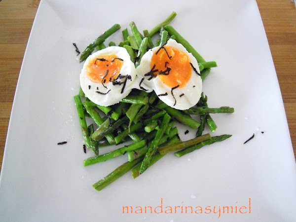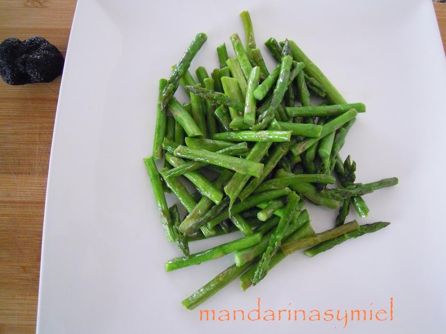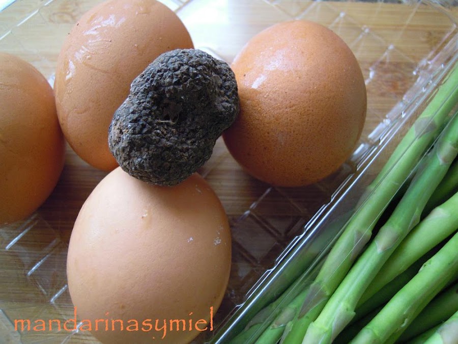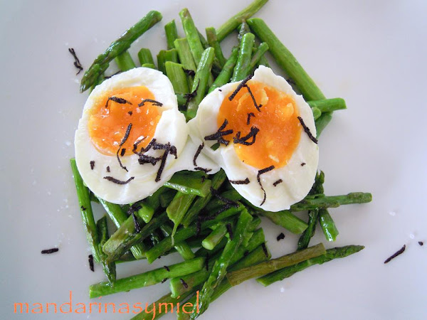 Hay veces que las recetas más sencillas son las más sabrosas...... La cocina diaria normalmente suele serlo, pero desde que tengo el blog, intento hacer platos nuevos, sanos y originales....pero de vez en cuando me doy cuenta de que no tengo que complicarme tanto para hacer un plato rico, fácil y delicioso, y eso es lo que pasa con esta receta....solo lleva tres ingredientes: espárragos trigueros, huevos y trufa.