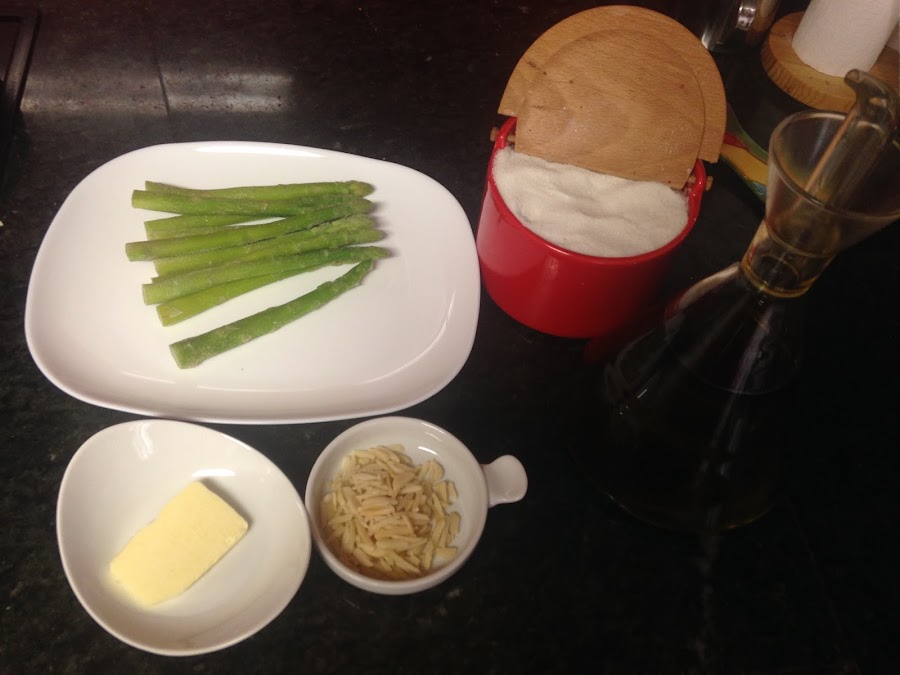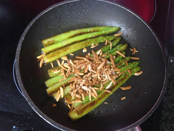 Añadimos las almendras a los espárragos y lo dejamos cocer un par de minutos.