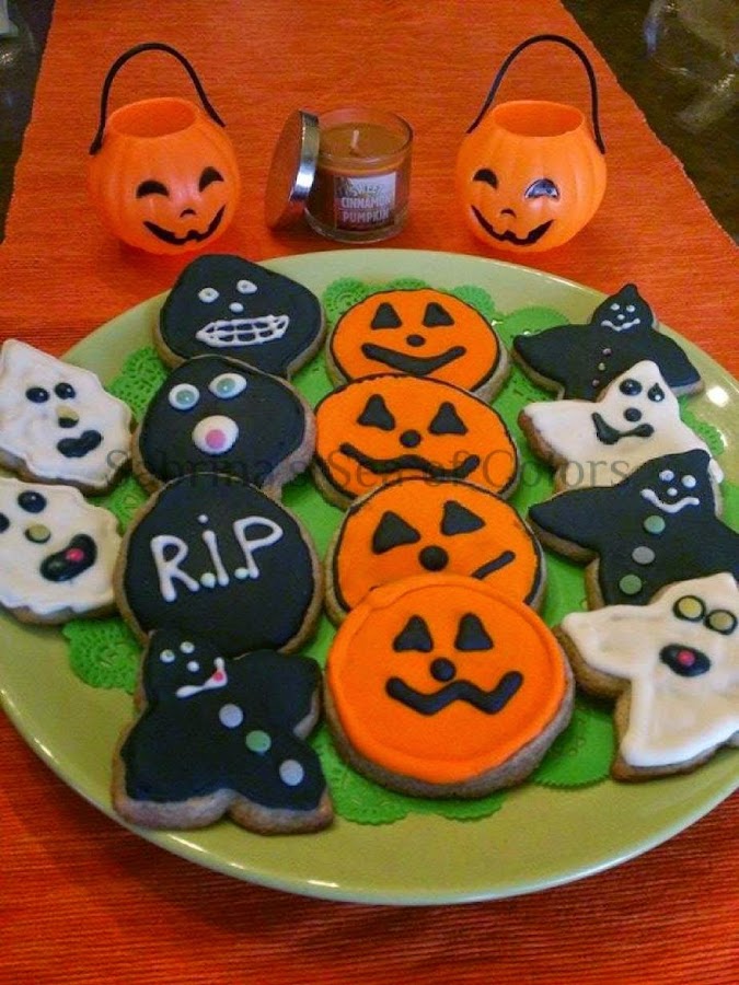Pero no sólo de cupcakes vive el blogger, desde Sabrina"s sea of colors también nos enseñan a hacer unas galletitas muy de Halloween con una pinta estupenda.