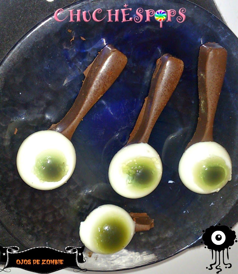 Por donde yo vivo, no ha llegado todavía eso de pedir caramelos por las puertas, pero si lo hubiese, no me imagino mejor dulce que ofrecer que estos ojos de zombie de Chuchespops.