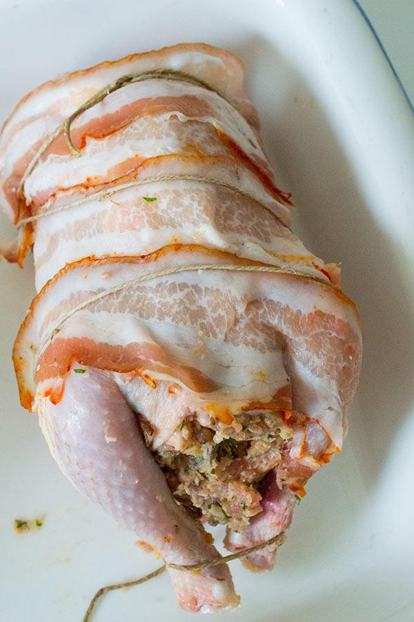 Cubrimos con la panceta y lo atamos con una cuerda de asar.