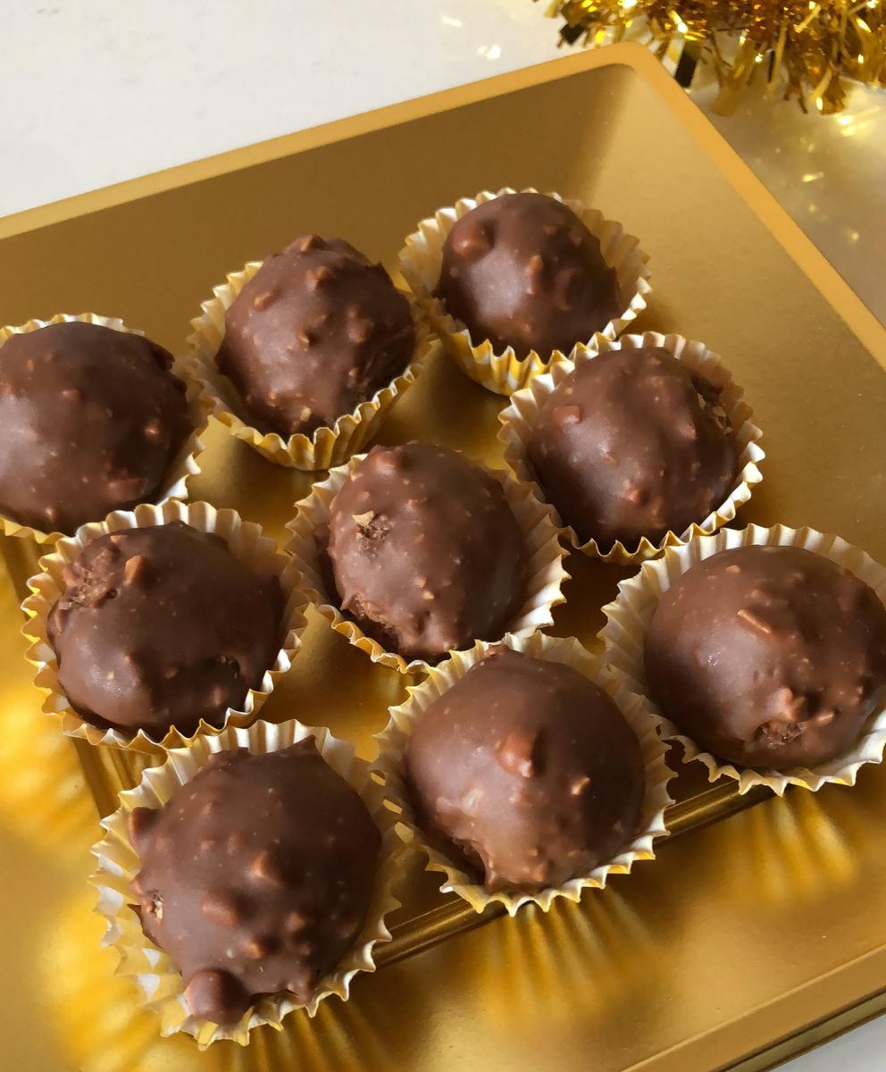 La primera, los exquisitos Ferrero Rocher caseros. Des de que hicimos por primera vez esta receta, ya no hemos vuelto a los originales. Son tan fáciles de preparar y triunfan tanto… Además, son un muy buen recurso para regalar y quedar como un gran chef.