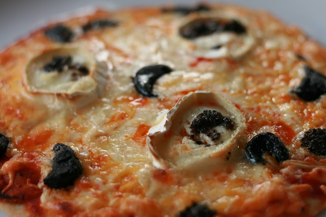 PIZZA DE QUESO DE CABRA CON AJOS NEGROS Y TRUFA