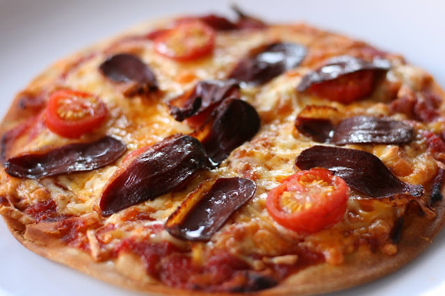 PIZZA DE JAMÓN DE PATO Y CHERRYS