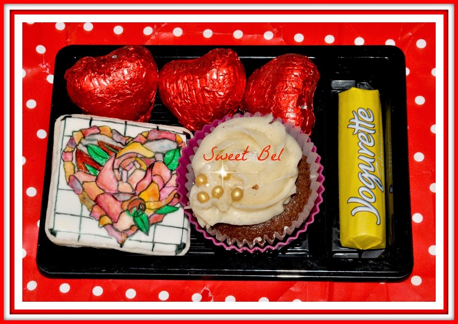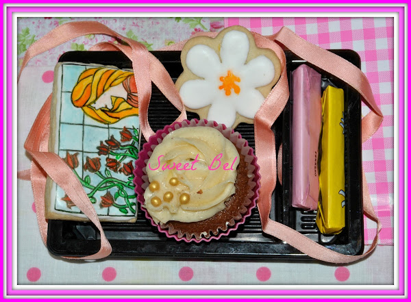 Estos los prepare hace 3 años para unas amigas, Llevaban un cupcakes con sorpresa una galleta preciosa y chocolate, ahora los hago diferentes, llevan una taza, una infusión, cafe o chocolate, unas galletas otro dulce y un zumo, chocolatinas y mucho amor!!!!