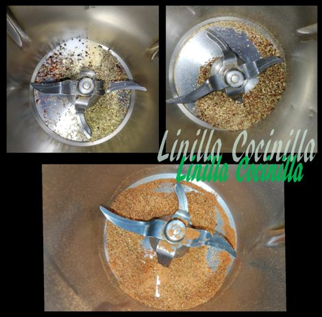 1. Coloque todas las especias en grano en el vaso (guindilla, orégano, comino, ajo, cebolla, semillas de cilantro, pimienta y la sal) y programe 30 seg/vel 10. Ponga en un cuenco y agregue las otras especias (Cúrcuma, jenjibre, pimentón dulce y ahumado) y mezcle con las semillas molidas. Guarde en un recipiente hermético y use a conveniencia.