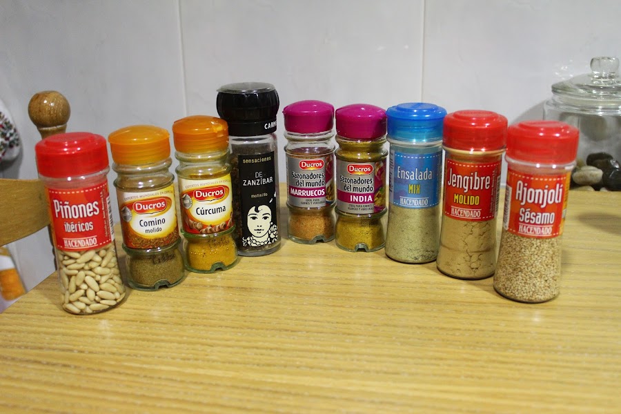 Piñones, Comino, Cúrcuma, Especias de Zanzibar, Especias de Marruecos, Especias de India, Mix de Ensalada, Jengibre, Semillas de Sésamo (Ajonjolí)