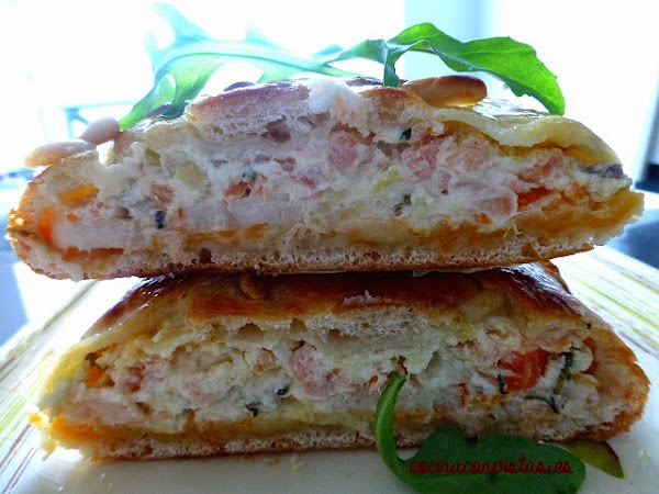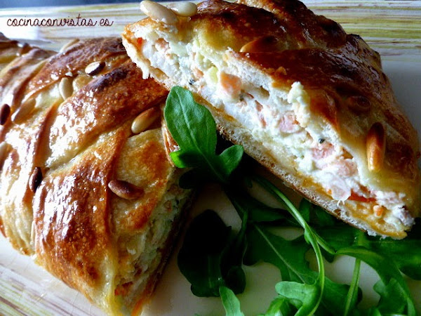 Ingredientes: 200 g. salmón ahumado, 200 g. queso crema, 1 ramita de eneldo picado, cebollino picado, 50 g de alcaparras, 25 g de pepinillos, 70 g surimi, ½ cebolla, pimienta, sal. En un bol mezcle el queso con las hierbas y las alcaparras (muy picaditas). Corte los pepinillos en rodajas finas y la cebolla bien fina y lo incorpore todo a la crema de queso y la salpimenté. El surimi lo compre ya pi ...