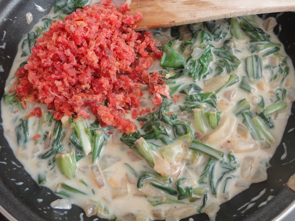 Por último apartamos del fuego e incorporamos el jamón bien picado y removemos.