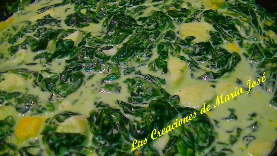 Se les da un hervor a las espinacas, se escurren y se pasan a una sartén onda. Se echa la leche evaporada, la sal, una pizca de pimienta negra y los huevos troceados. Removeis bien y dejar unos 10 minutos a fuego bajo. Listas para comerlas.