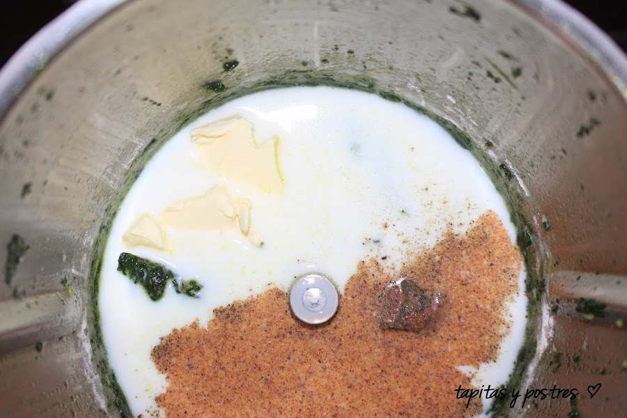 Y ahora le toca a la leche, la mantequilla, la pimienta y la nuez moscada (se me fue la mano con esta ultima)