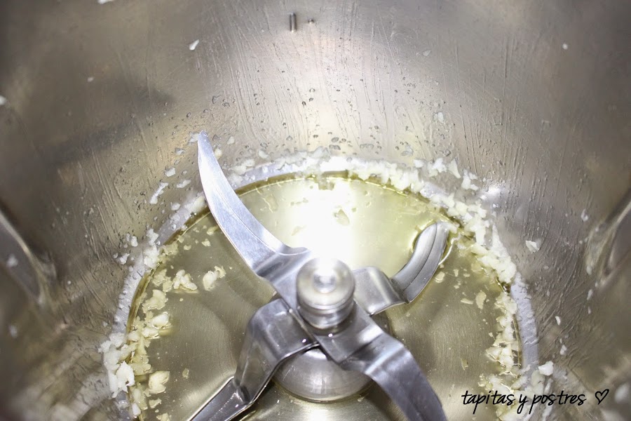 Ponemos el ajo en el vaso y lo cortamos 3 segundos a velocidad 7.