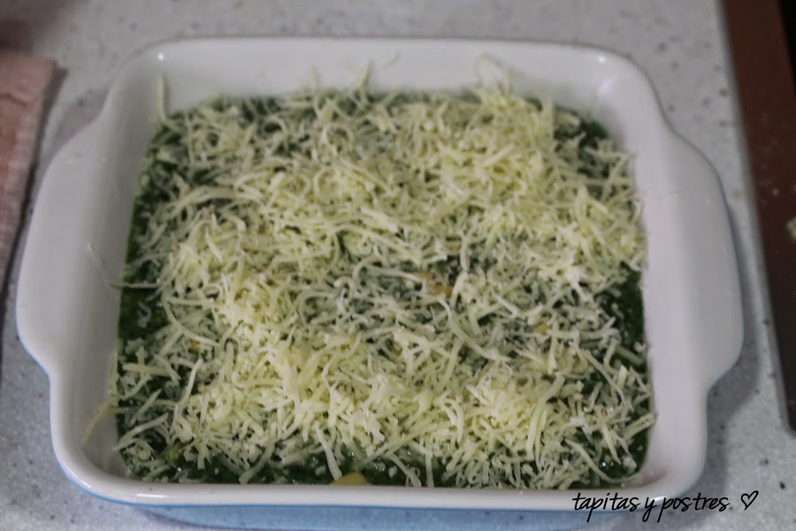 Espolvoreamos queso rallado por encima y a hornear. Unos quince minutos.